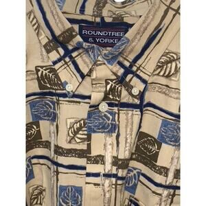 Keywords: Roundtree & Yorke, men's shirt, large size, short sleeve, multicolor shirt, geometric pattern, cotton shirt, button-down collar, casual wear, spring fashion, pre-owned clothing, men's fashion, regular fit, button-up shirt, men's casual shirt