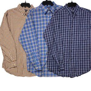 Roundtree & Yorke Mens Long Sleeve Button-Down Plaid Shirts 3 Pack L