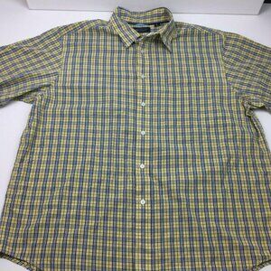 Roundtree & Yorke Mens Plaid Blue Yellow Short Sleeved Shirt Size XL
