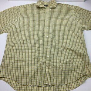 Roundtree & Yorke Mens Plaid Yellow Short Sleeved Shirt Size XL