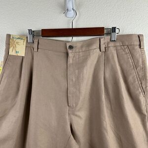 Roundtree & Yorke Men's Size 40 Flat Front Chino Short Khaki Tan Linen Blend