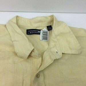 Roundtree & Yorke Mens Yellow Linen Solid Short Sleeved Shirt Size XL