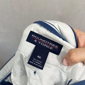 Roundtree & Yorke NEW Classic Fit Flat Front Shorts Blue Chino Cotton - Size 46