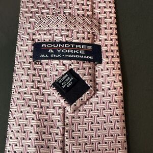 Roundtree & Yorke Neck Tie Pink w/Black Dots 100% SILK Hand Made 4" W x 60" L.