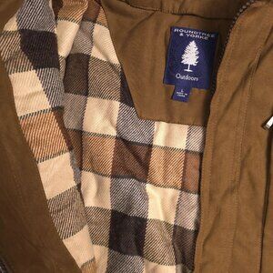 This Roundtree & Yorke Outdoors jacket offers a stylish and durable option for outdoor activities. Featuring a blend of polyester and wool, it provides warmth and comfort. The plaid lining adds an element of classic style, while the zippered closure ensures practicality and ease of use.