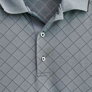 Stay sharp and cool with this Roundtree & Yorke Performance polo shirt in a classic gray diamond pattern. Made of breathable 100% polyester, this short sleeve polo is great for golf, casual Fridays, or weekend wear.