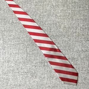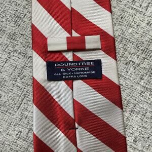 Roundtree & Yorke Red White Striped Silk Neck Tie