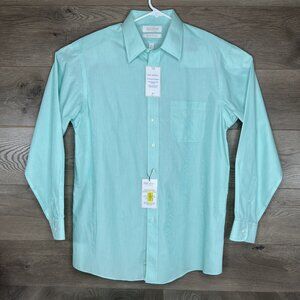 Roundtree & Yorke Shirt 16.5 / 35 Mint Green Stripe EZ Care Gold Label NWT