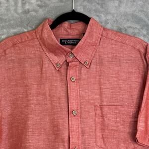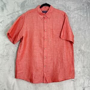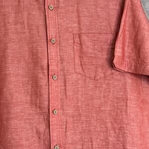 Roundtree & Yorke Shirt Men L Linen Blend Pink Button Up Short Sleeve Casual