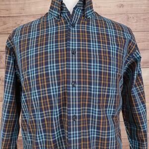 Roundtree & Yorke Shirt Mens Large Blue Brown Plaid Button Down Long Sleeve Classic