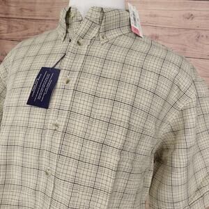 Roundtree & Yorke Shirt Mens XL Plaid Linen Blend Short Sleeve Easy Care Casual