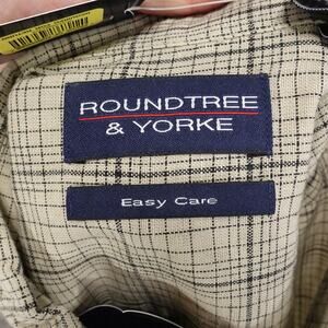 Roundtree & Yorke Shirt Mens XL Beige Black Plaid Linen Cotton Short Sleeve Easy Care