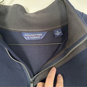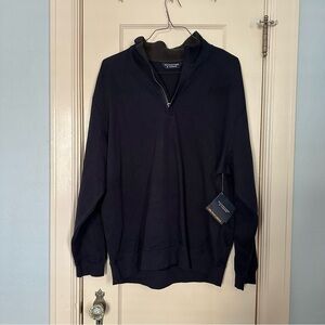 Roundtree & Yorke Shirt Mockneck Navy Silky Finish Quarter Zip Sweater Sz XL
