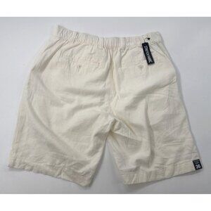 Roundtree Yorke Shorts Mens 36 White Linen Blend Elastic Waist Flat Chino NEW