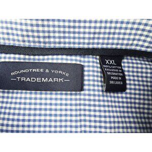 Roundtree Yorke Size 2XL Mens Blue White Check Button Down Long Sleeve Shirt