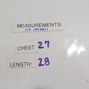 Approximate flat measurements: Chest: 27 in, Length: 28 in