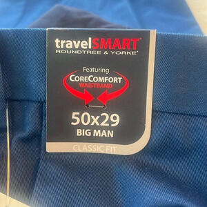 Roundtree & Yorke Travel Smart Blue Khakis Chinos Sz 50” x 29” Classic Fit NWT