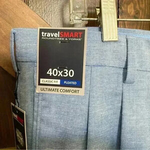 Roundtree & Yorke Travel Smart Ultimate Stretch Waist Comfort Cuffed Blue 40x30