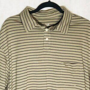 This Roundtree & Yorke striped shirt features a classic brown design with a pocket and short sleeves. Made from comfortable cotton, it fits size 2XT and measures 25" from armpit to armpit and 34" in length.