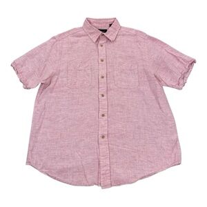Breezy and stylish, this Casual Male short sleeve button-up shirt is made from a lightweight 55% linen / 45% cotton blend—ideal for warm weather, travel, or everyday casual wear. It features a subtle red-pink textured weave, two chest pockets, and a comfortable relaxed fit.