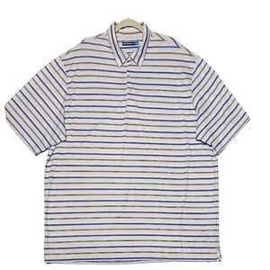 Roundtree & Yourke Polo Shirt Classic 3 Button Short Sleeve Men 2XT Casual Golf Stretch Striped Blue, Brown & White Fishing Boating… Excellent buy