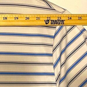 Roundtree & Yourke Polo Shirt 3 Button M 2XT Stretch Striped Blue, Brown & White