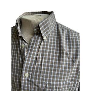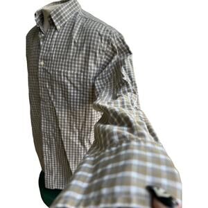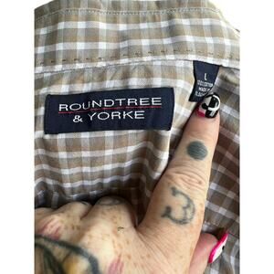 Roundtree and York button up shirt, brown and white plaid size large 100% cotton