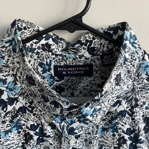 Roundtree and Yorke Blue and White Floral Button Down Shirt 2XT
