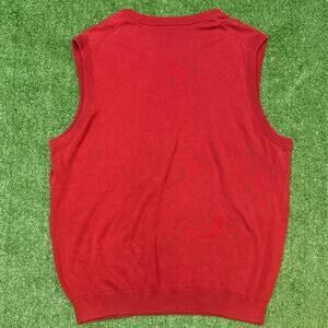 ☆ Features: Classic red V-neck sweater vest with subtle diamond knit pattern. Sleeveless design perfect for layering. Crafted for tall sizing, offering extra length and comfort.