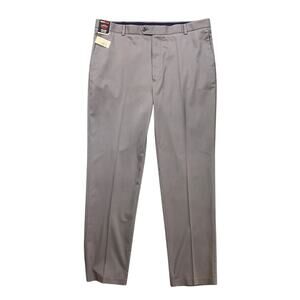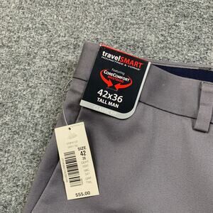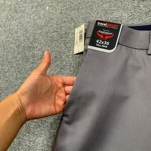 ROUNTREE & YORKE PANTS MENS 42 TALL STEEL TRAVEL SMART CLASSIC FIT FLAT FRONT