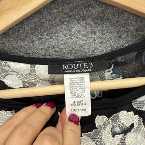 Route 3 Blouse Women L Large Black Floral Cold Shoulder Short Sleeve Wide Strap