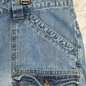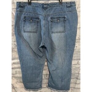 Route 66 Capri Womens 22W Blue Denim Button Fly Y2K Raw Hem Made in Russia Vntg