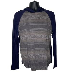 Route 66 Classic Aztec Print Pullover Hoodie (Size:M, Color:Navy-Blue/Gray