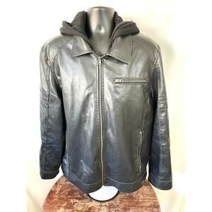 Route 66 Faux Leather Jacket w/ Hood XL Black