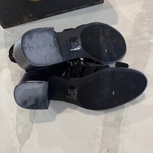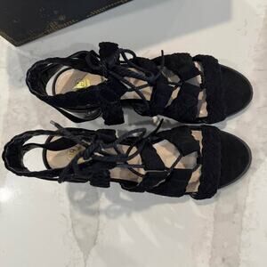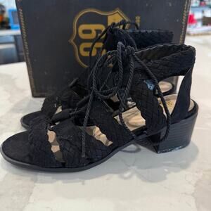 Route 66 Marcia LaceUp Wedge Dress Sandals Womens 7 Black ChunkyHeel WovenStraps