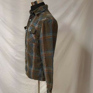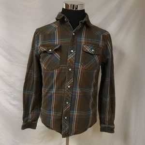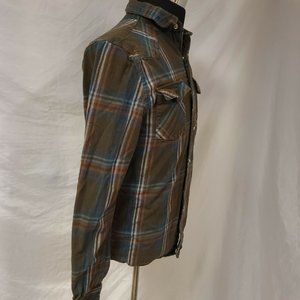 Brand & Description: Route 66 Mens Large Brown Blue Stripe Flannel Pearl Snap Western Shirt