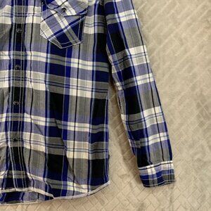 Route 66 Mens Medium Button Up Shirt Blue Plaid Pearl Snap Long Sleeve Western. No stains or holes.