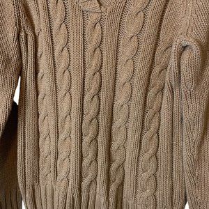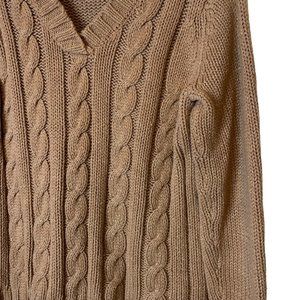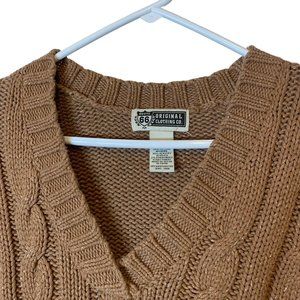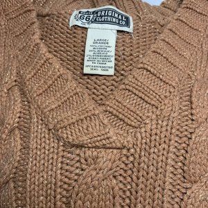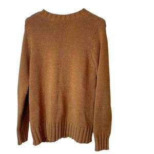 Route 66 Original Clothing Co. Sweater Womens Cable Knit V-Neck Pullover Large Brown w/Gold