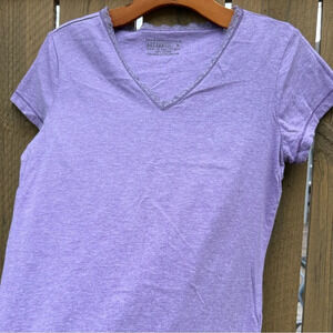 Route 66 Purple Cotton Lace Trim V-Neck Tee Women’s Medium