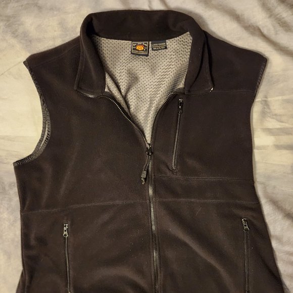 This is very lightly used and in terrific shape. It's a mens, but women can wear it, too, if you don't mind the zipper on the wrong side :). The fleece is in great shape and the zipper works perfectly. The inside lining is ventilated for a comfortable feel all day. It also features two side pockets with zippers.