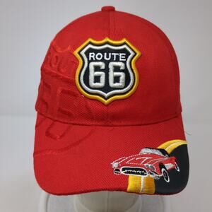 Route 66 Strapback Hat Red One Size Adjustable Embroidered Real Time