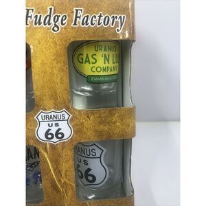 Route 66 Uranus Fudge Factory Shot Glass Set of 4, Brand NEW, Uranus, Missouri.