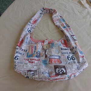 Route 66 crossbody bag by Christi's Creation, canvas print, cotton lining, VGC