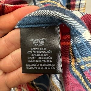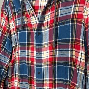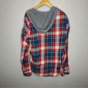 Route 66 plaid hooded flannel button front long sleeve shirt