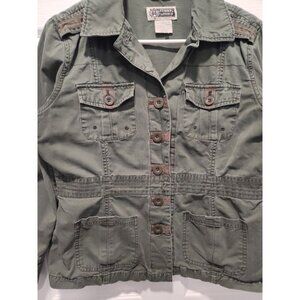 Route 66 woman Size Medium Olive Green Military Utility Jacket 100% cotton