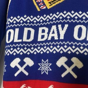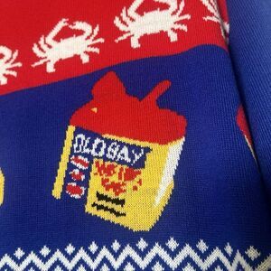 Route One “Old Bay” Crawfish Ugly Sweater Adult Sz Large Cajun Christmas Red Blu