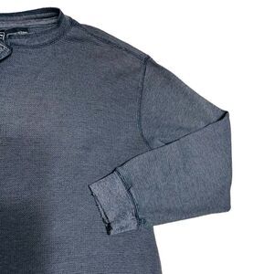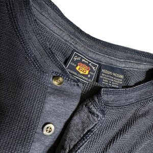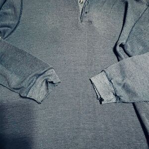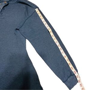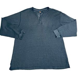 Route 66 Distressed heathered Blue Long Sleeve Henley has ragged cuffs, collar and hems. In great distressed condition.