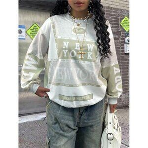 Rovax Women's Casual Letter Print Loose Fit Crew Neck Long Sleeve Sweatshirt,