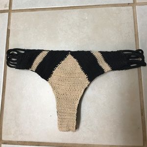 Rove Swimwear Hudson bottoms size small. Crocheted beige and back with strapped side details. **NOT Acacia**