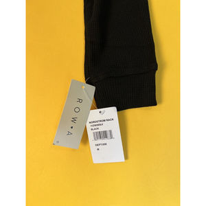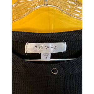 Row A Cropped Henley Knit Top Womens M Black Long Sleeve Pullover Casual NWT